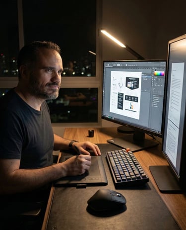 Acredito que profissionalismo se mede em compromisso. Respeito prazos, organizo processos e mantenho uma comunicação direta durante todo o desenvolvimento do projeto. Isso garante que a ideia inicial evolua de forma consistente até se tornar algo concreto e bem executado.